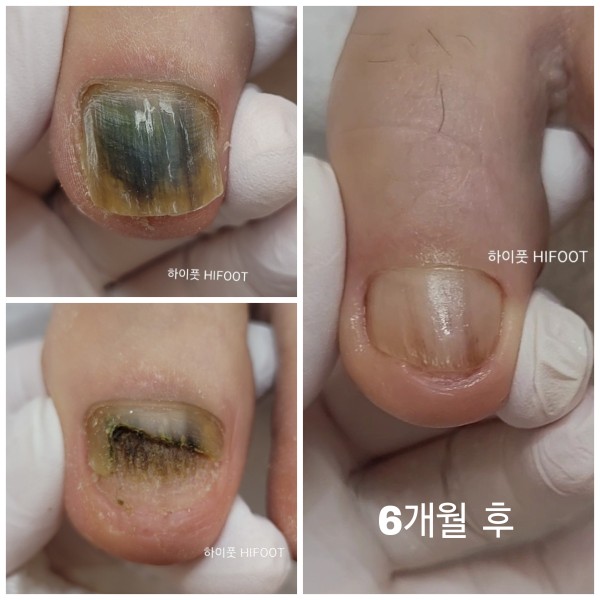 박리된 공간에 습기와 균 증식 → 발톱 성장에 방해